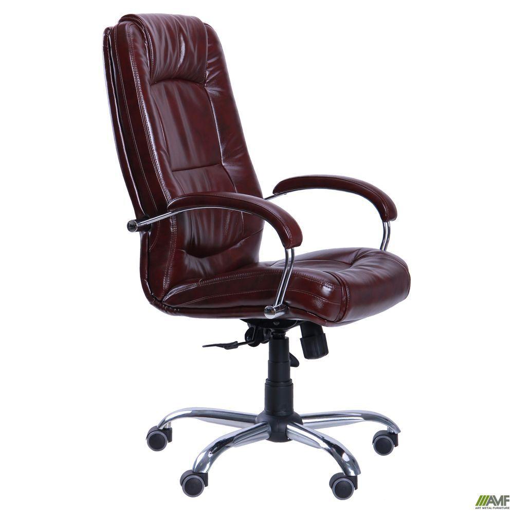 Офісне крісло керівника AMF Марсель хром механізм Anyfix коричневий кожзам Мадрас фирензе