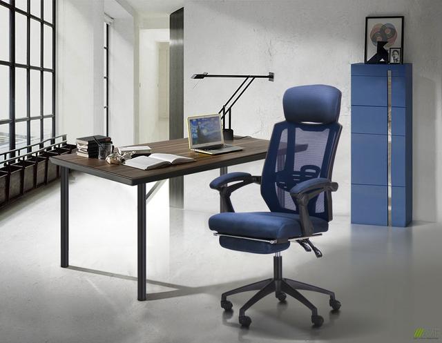 Крісло офісне Art темно-синя сітка з підголівником механізм Релакс підставкою для ніг