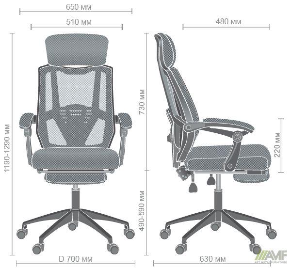 Офісне крісло АМФ Art темно-синя сітка має розміри: